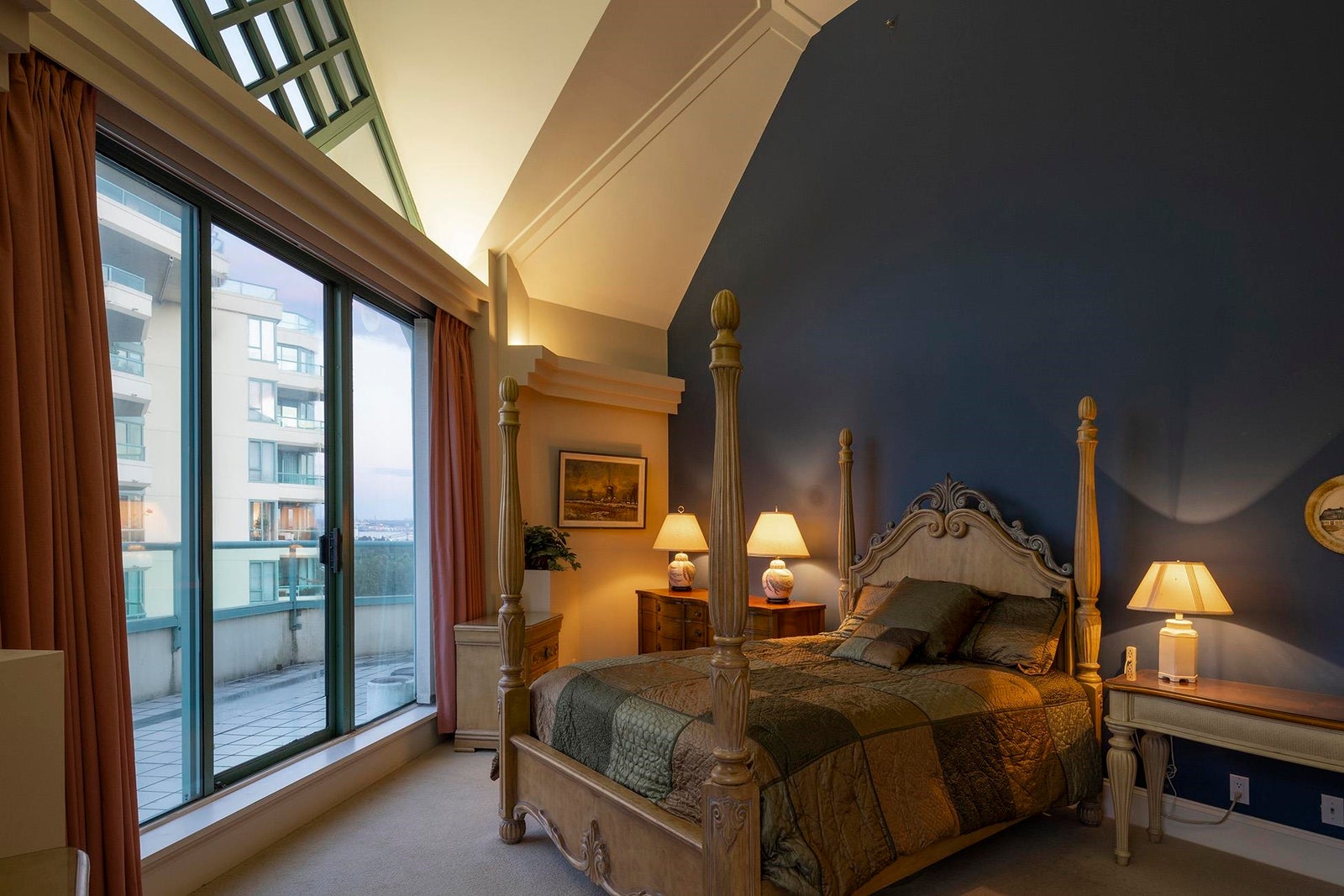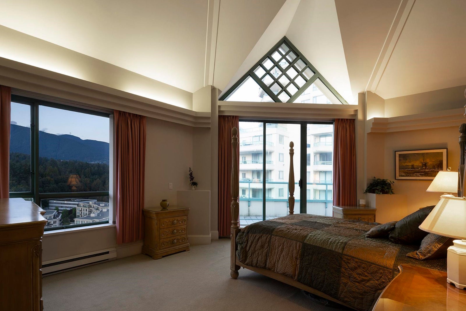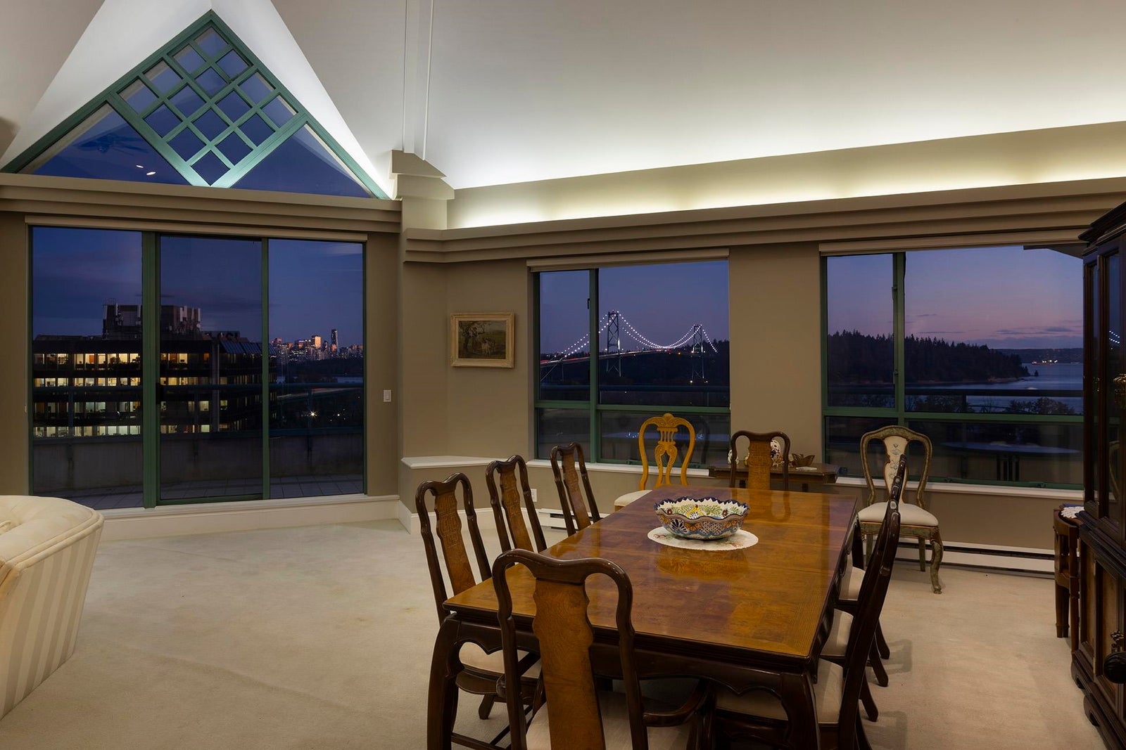 Welcome to this grand penthouse at the Westroyal. An exclusive residence boasting a spacious 2,200 sqft open plan living with cathedral style ceilings. Spectacular Unobstructed views of the Mountains, Ocean, Lions Gate Bridge & sparkling city lights from the floor to ceiling windows or sit outside on the wrap around deck soaking in the sunshine, ocean views & winter sunsets. Offering 3-4 bedrms, including large Primary suite with private balcony & 6-piece en-suite! Bonus 522 sqft guest or nanny suite on the 2nd level! Ready for your personal touches or move in! Convenient location, steps to Park Royal Shopping Centre & short stroll to Ambleside Beach. Amenities include a large fitness centre, swimming pool, Jacuzzi, garden & entertainment rm. 4 parking stalls & 2 storage lockers.