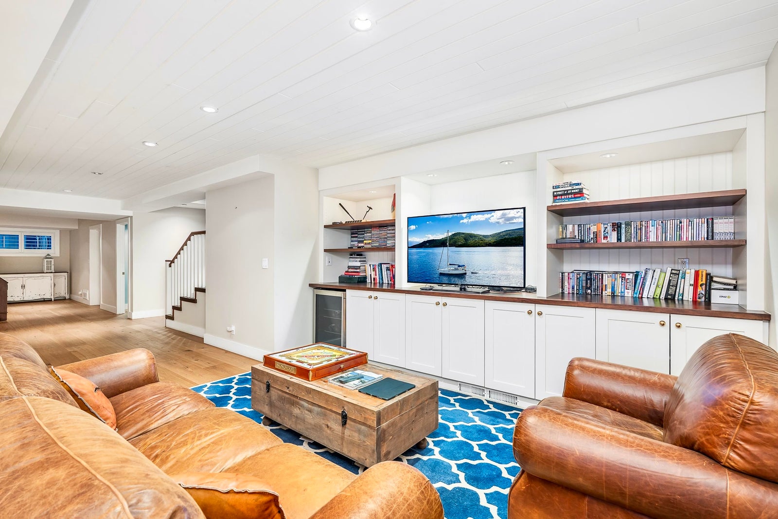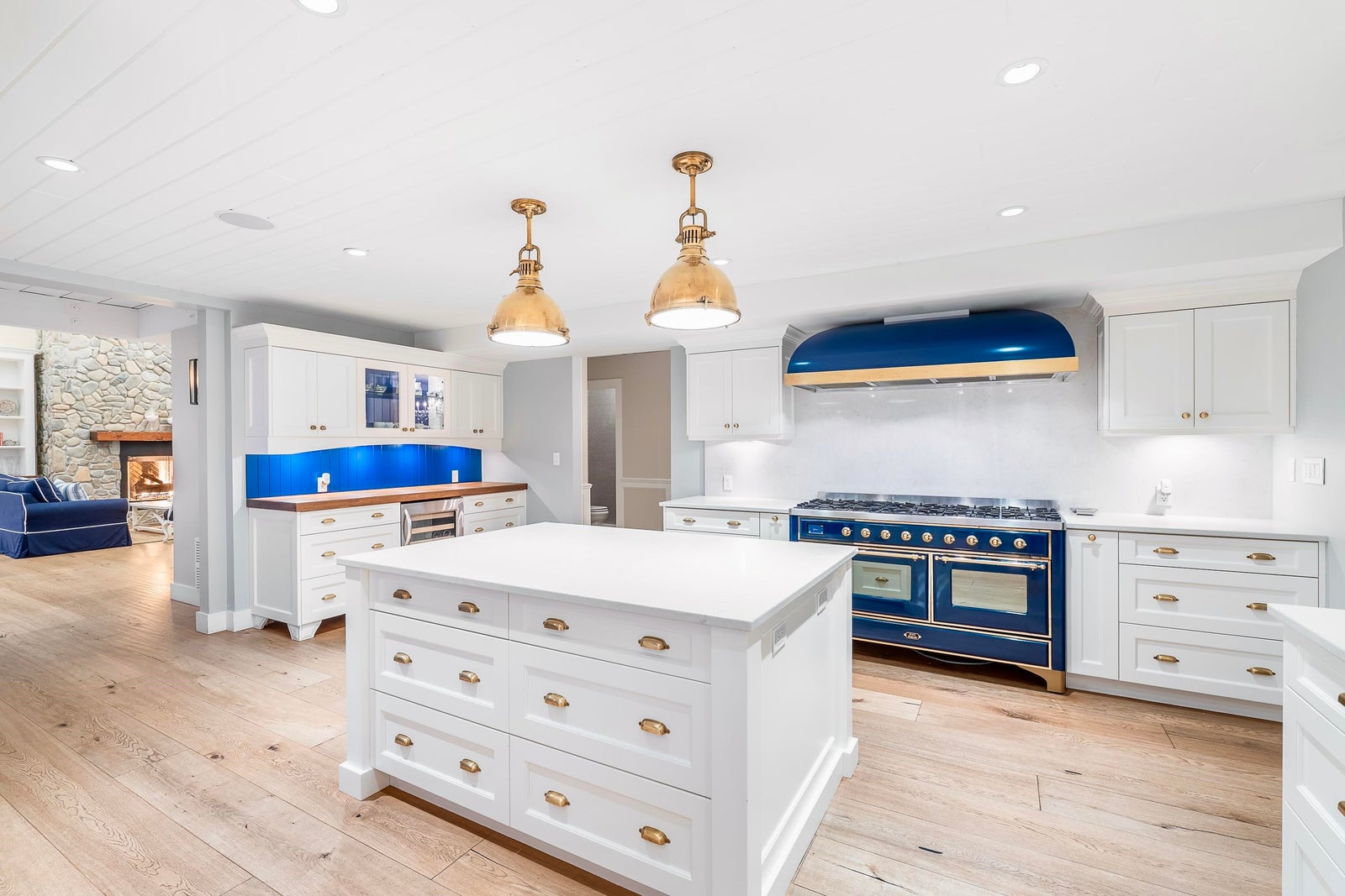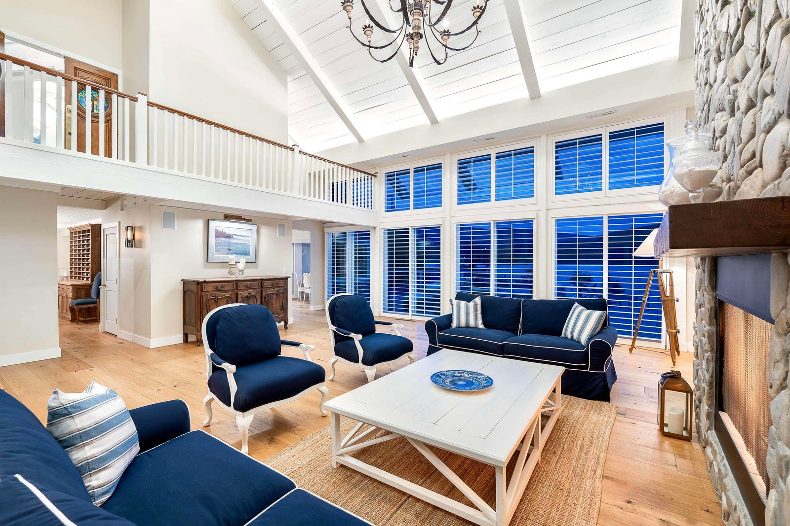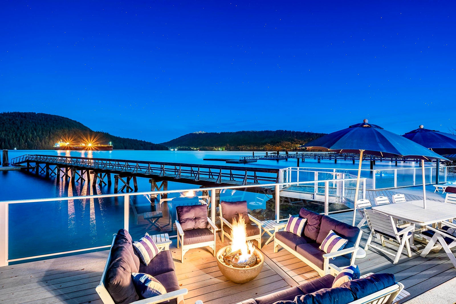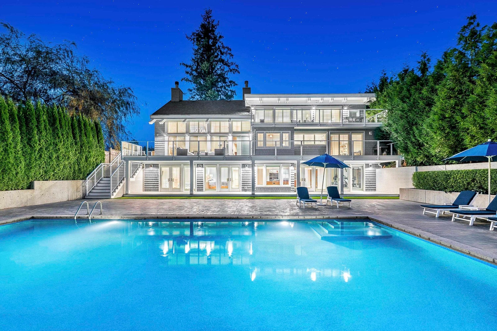 An Iconic Waterfront Estate in Deep Cove. Set along one of Deep Cove’s most coveted level waterfront streets, 614 Lowry Lane is a refined coastal estate offering timeless architecture, resort-style living, and exceptional privacy. Encompassing approximately 6,153 sq. ft. over three levels, this Hamptons-inspired residence is defined by vaulted ceilings, wide-plank hardwood floors, and walls of windows framing serene ocean and mountain views. A grand stone fireplace anchors the main living area, while the kitchen features custom cabinetry, a generous centre island, and elegant detailing. The primary suite is a tranquil retreat with vaulted ceilings, fireplace, and spa-like ensuite. Outdoors, rare level waterfront grounds showcase a stunning oceanside pool and entertaining space.